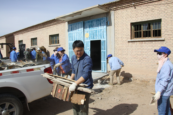 活动中,志愿者们拿着扫帚、铁锹,对库房院内的垃圾、杂草、废旧物资进行清理,党员分工明确,相互配合协调,干的是热火朝天热,经过半天的辛苦忙碌,供应库房现场环境面貌焕然一新。
