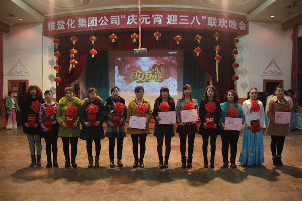 “三八妇女节”将至,晚会现场通过投影向全体女工送上的祝福话语贯穿始终,期间特意安排了颁奖环节。集团公司领导及各子公司、本部各单位负责人分别为采盐分厂女工小组等4个先进女工集体;姜丽、李志刚9个“五好”文明家庭和马爱林等14名“三八”红旗手颁奖。